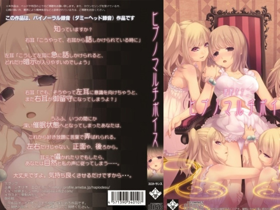 左耳から囁かれ、すかさず右耳や正面、後方からの別の声で囁かれればあなたの頭はすぐに混乱し、深い催眠状態へと簡単に誘われてしまう。そんな催眠の世界であなたの回りを取り囲むのは、まるでフランス人形のように愛らしい少女達。彼女達はあらゆる性感帯を刺激し、あなたはただただ弄ばれるのみ…