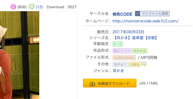 本作はダミーヘッドマイクで収録された超リアル音声作品。特筆すべきなのは「びっくりしてイヤホンを外してしまう」ほどリアルだという点。冒頭の扉を叩く音がした時、てっきり壁ドンかポルターガイストだと思いギョッとしてイヤホンを外してしまった…。お恥ずかしい話だが、3次元世界の音と何ら変わりないリアルさに仰天だ。”何を言っているのかわからない”という人はとにかく桃色CODE「【タッチ耳かき】道草屋-たびらこ3-いっしょにタッチケア/はみがきレッスン【骨伝導風はみがき】」を聞いて頂きたい。!