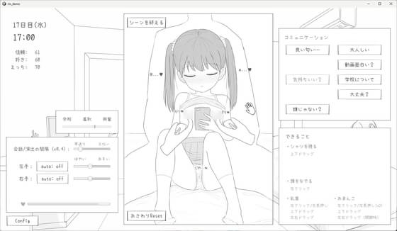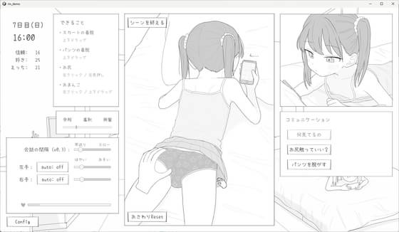 シミュレーションおさわりロリメスガキ日常/生活 アパートの隣に住んでいる女の子と部屋でえっちなことをするおさわりシミュです。