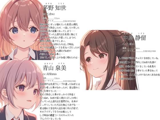卒業まで告白できなかった憧れの泉美と美大で再会した知世。人物デッサンが苦手な彼女は泉美に秘訣を教わるが、それはレズ風俗の百合鑑賞コースを生で見ながら描く事だった。こっそりレズ風俗へ行くもキャストの遅刻でネコ役を知世がすることに……お気に入りだった同人誌と同じシチュエーションを体験している時、そこに現れたのは…… CV:乙倉ゅい 高梨はなみ 【紹介記事】