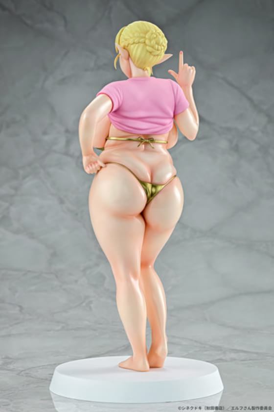 「絵留札 Gold ver.」が、26年5月発売予定で予約受付中だ。本作は、話題作『エルフさんは痩せられない。』から登場した、ぽっちゃり系エルフ「絵留札」の魅力を最大限に引き出す豪華フィギュア。Gold ver.は、通常版から衣装と肌の彩色が大きくグレードアップされており、金色のビキニと艶のある光沢肌が目を引く。 柔らかな肉感の表現だけでなく、ぽっちゃり好きには堪らないお腹や太もも、豊満な胸など、キャラクターの“ワガママボディ”を丁寧に再現されている。金ビキニの鮮やかさと肌の光沢感が合わさることで、よりセクシーで艶やかな印象が際立つ一作。