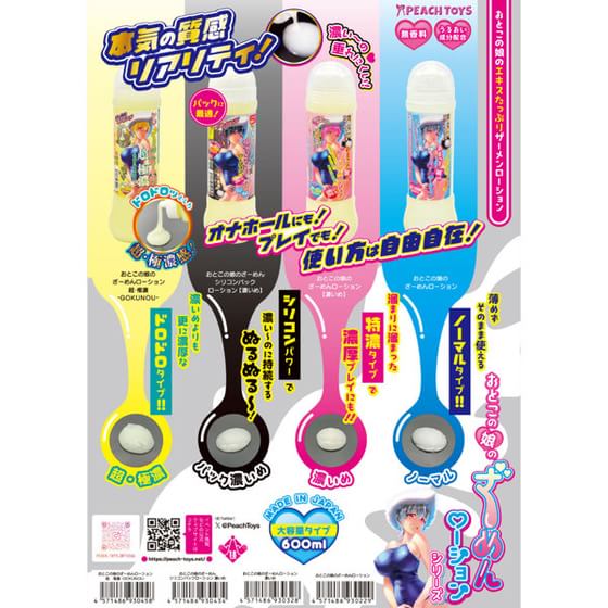 PEACH TOYSの「おとこの娘のざーめんローション超・極濃-GOKUNOU-(600ml)(KIY045)」は、“ざーめん”好き必見の超濃密ローション。600mlの大容量でコスパ抜群、思う存分ドロドロ感を味わいながら、贅沢なプレイを何度も楽しめる。最大の特徴は、リアルな“本気の質感”ととことん追求された“超・極濃”のドロッとした粘り。まるで本物のような圧倒的な濃度と重みで、リアルでインモラルなシチュエーションを忠実に再現。おとこの娘のエキスたっぷり仕様で、フェチ心を刺激し尽くしてくれるぞ。